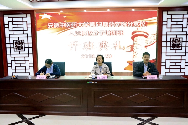10月29日下午5点半在药学院沁馨堂举办了药学院分党校第53期入党积极分子培训班开班典礼。校团委副书记叶兰兰,药学院党委副书记金晓琴出席了本次开班典礼,典礼由本期培训班班主任黄伟军主持,全体学员参加了此次典礼。