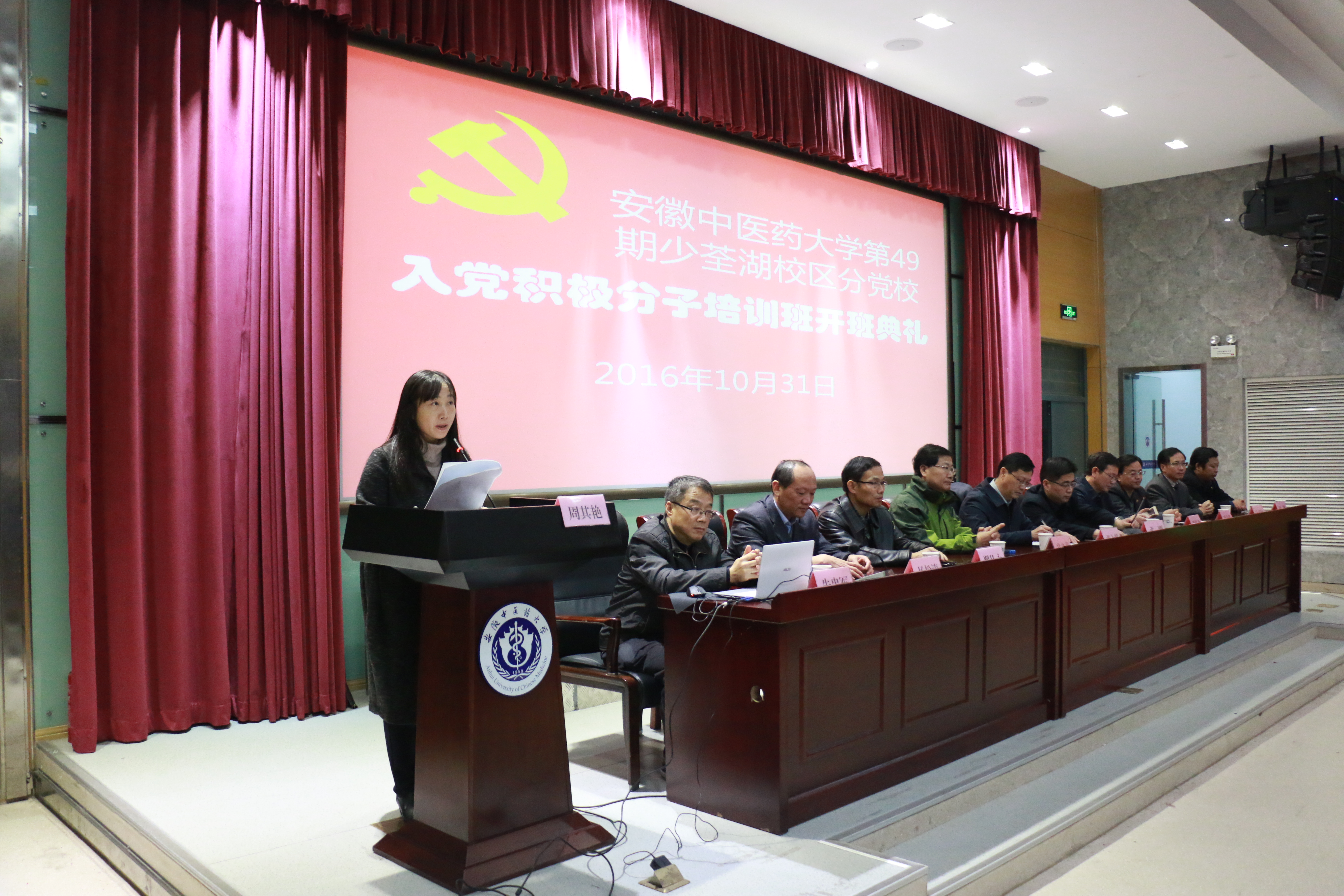 学校党校分别于10月31日、11月2日,在少荃湖校区和梅山路校区举行第49期入党积极分子培训班开班典礼。学校党委副书记、党校校长张永群,学校党委组织部部长、党校副校长武刚,各教学院部党总支负责人出席会议,两个校区的开班典礼分别由党委组织部组织员周其艳和针灸骨伤临床学院党总支书记杜明主持。