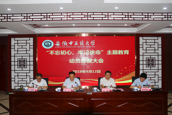 王先俊强调,要提升政治站位,深刻认识开展主题教育的重要意义。开展“不忘初心、牢记使命”主题教育,是用习近平新时代中国特色社会主义思想武装全党的迫切需要,是推进新时代党的建设的迫切需要,是保持党同人民群众血肉联系的迫切需要,是实现党的十九大确定的目标任务的迫切需要;开展好“不忘初心、牢记使命”主题教育对于加快建设五大发展美好安徽,助力学校建成国内有实力、省内高水平、行业有影响的中医药特色鲜明的高水平大学,具有十分重要的意义;要突出政治建设,抓实抓好主题教育各项任务举措。开展主题教育要牢牢把握深入学习贯彻习近平新时代中国特色社会主义思想根本任务,坚持“守初心、担使命,找差距、抓落实”总要求,落实“学习教育、调查研究、检视问题、整改落实”重点措施,实现“理论学习有收获、思想政治受洗礼、干事创业敢担当、为民服务解难题、清正廉洁作表率”目标;要强化组织领导,确保主题教育取得实实在在的成效。要强化责任领导、加强督促指导、加强宣传引导,发扬严实作风、杜绝形式主义,把开展主题教育同推进“两学一做”学习教育常态化制度化结合起来,同巩固“严强转”专项行动成果和深化“三查三问”结合起来,同推动学校当前中心工作结合起来,防止出现“两张皮”的现象。