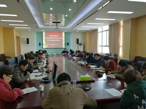 根据《中共安徽省纪委机关、中共安徽省委组织部关于认真开好2017年度县以上党和国家机关党员领导干部民主生活会的通知》要求,2018年1月17日下午,在惟是楼三楼第一会议室召开了2017年度校级党员领导干部民主生活会征求意见座谈会。会议由组织部部长武刚主持,学校领导王大鹏、曹玉,部分教代会执委、政协委员、民主党派、教师、学生代表以及各分党委(党总支、直属党支部)代表参加了座谈。