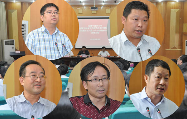 王大鹏强调,总书记系列讲话精神博大精深,具有较强的理论性、实践性和系统性。学习贯彻总书记的讲话和十八届三中全会精神是一个逐步深化的过程,更是一项长期的政治任务。我们不仅要学深学透,而且要带动本单位每一个党员干部的学习,达到统一思想、提高认识、凝聚力量、指导实践、推动工作的目的。在今后的工作中,以更加自觉的行动、更加有力的举措,继续把学习活动引向深入,坚持求真务实的学习态度,坚持重实际、说实话、干实事、求实效,以良好的精神状态抓好贯彻落实,以扎实的工作成效推动科学发展,为建设安徽中医药大学的美好明天而奋斗!