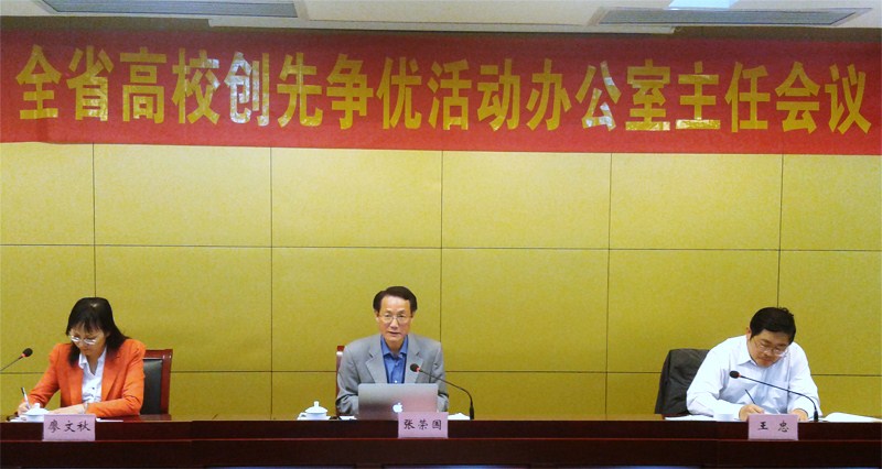 2011年10月19日,全省高校创先争优活动办公室主任会议在安徽大学学术交流中心召开。本次会议的主要任务是贯彻落实中央和省委创先争优活动有关精神,小结全省高校创先争优活动开展情况,部署在高校深入开展“落实教育规划纲要、服务学生健康成长”为主题的“为民服务创先争优”活动。省委教育工委常务副书记、省委教育工委创先争优活动领导小组副组长张荣国出席会议并作讲话。我校创先争优活动办公室主任、组织部长王道和参加会议。