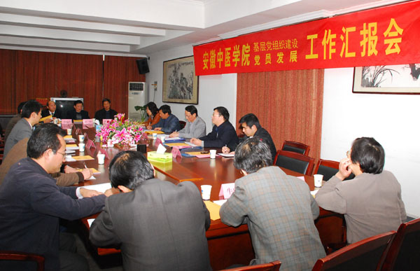 张荣国在听取我校有关工作汇报,并认真与我校有关人员座谈后,发表了讲话。他高度肯定了我校基层党组织建设和党员发展工作。他认为,安徽中医学院在基层党组织建设中有几个标志性的成果,一是被确定为学习实践科学发展观全省唯一试点高校,二是被确定为党代会常任制六所试点高校之一,三是正在有序推进创先争优活动。学校党委高度重视基层组织建设,保障了学校“十一五”时期进入了快速发展,学科建设、人才队伍建设等都有显著的成果,党员发展工作扎实有效,充分体现了“围绕中心抓党建,抓好党建促发展”。