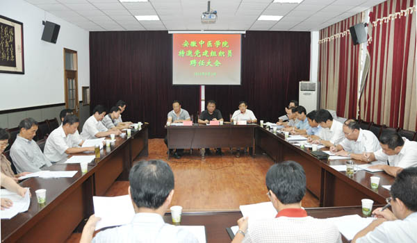 会议由校党委副书记雷广宁主持。他宣读了学校党委《关于聘请离退休老同志担任特邀党建组织员的通知》。经学校党委研究,决定聘请陈昌元、黄笃法、姚道云、卢业苗、陈雪功、陶兴华、沈定余、张敏等8位离退休老同志担任特邀党建组织员。按照《安徽中医学院特邀党建组织员工作细则》,党建组织员将坚持“严格把关、多方协调、全面督导”的原则,指导党章学习小组活动,协助办好党校;配合做好入党积极分子的培养工作;协助审核发展对象的入党材料并在必要时进行重点帮助;参与发展对象的培养培训以及谈话等;协助做好大学生预备党员的教育和考察;了解和掌握大学生党建工作的有关情况,提出意见和建议;督促基层党组织落实和完成年度发展计划;有组织地开展大学生党建调研等工作。他要求特邀党建组织员要尽快进岗,尽快熟悉工作;各职能部门各负其责,关心组织员,为他们工作创造良好条件;各方面共同努力,不断完善和加强大学生思想政治教育工作。