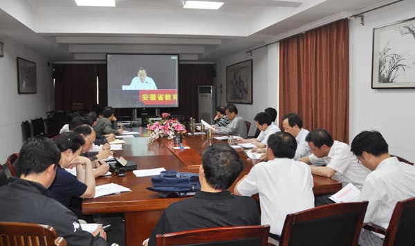 5月24日下午,省委教育工委召开深入开展“创先争优”活动动员推进视频大会。省委教育工委书记、省教育厅厅长程艺对深入开展创先争优活动作动员和部署。校领导王大鹏、雷广宁、彭代银、张永群、刘新跃,各党总支、直属党支部、附院党委负责人,群团组织负责人在学校分会场观看了视频。